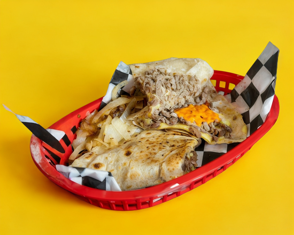 Quesadilla de harina de 12 pulgadas rellena de carne de bistec y trompo