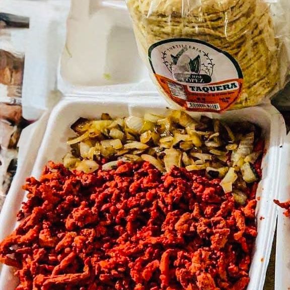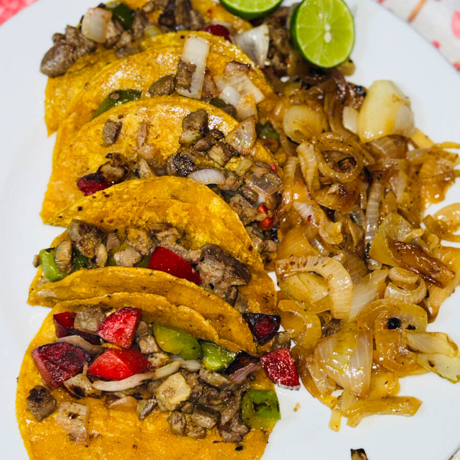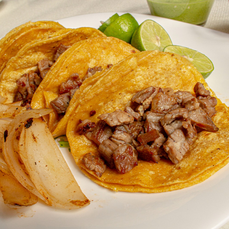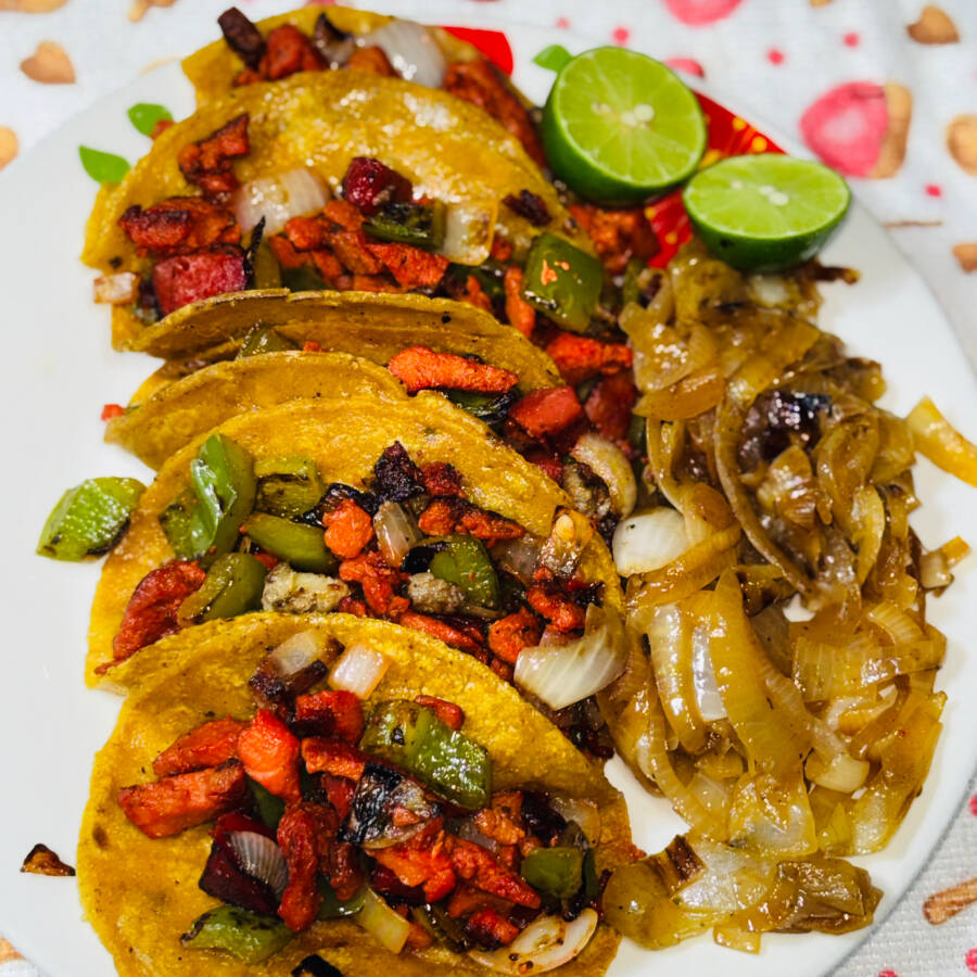 ORDEN CON 5 TACOS INCLUYE CEBOLLA CHILE MORRON SALCHICHA ASADA TOCINO CEBOLLA ASADA LIMON Y SALSAS VERDE Y ROJA