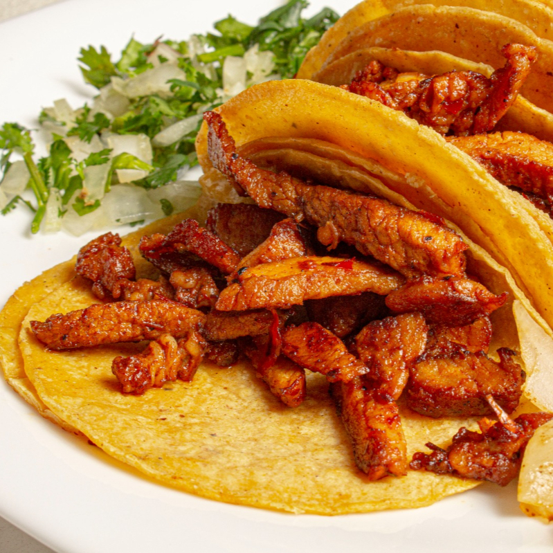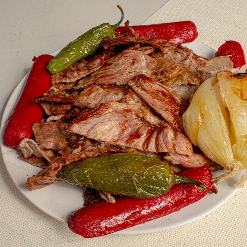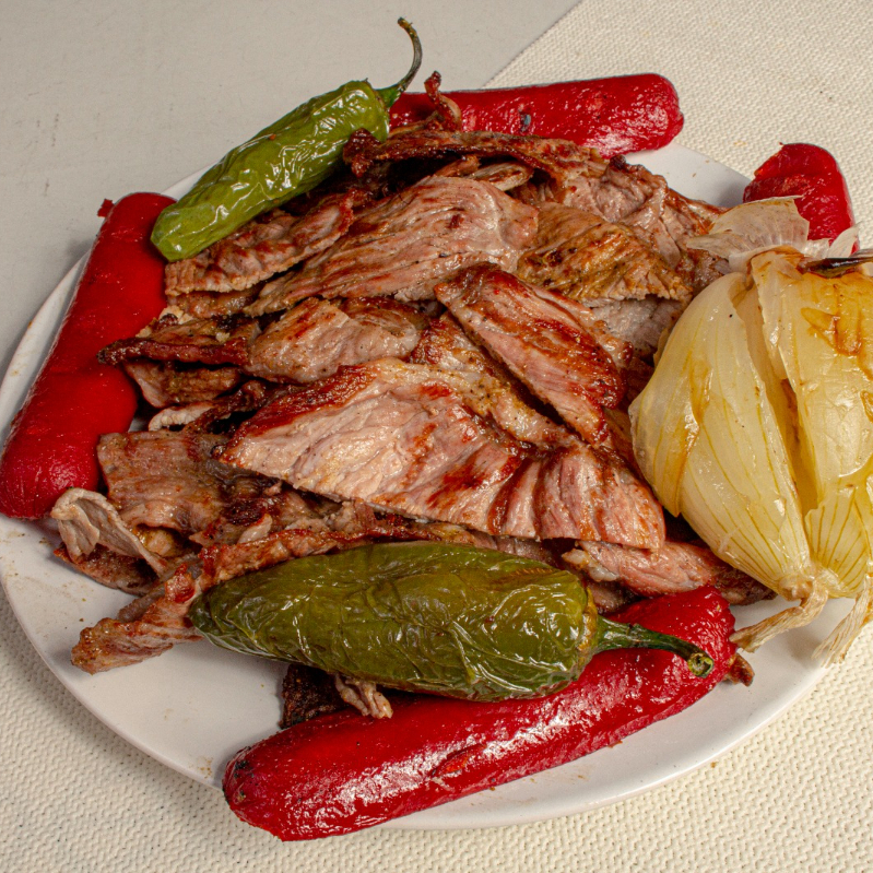 I/2 KILO DE PASTOR PARA 3 PERSONAS INCLUYE TORTILLAS CEBOLLA ASADA LIMON CEBOLLA Y CILANTRO SALSAS VERDE Y ROJA