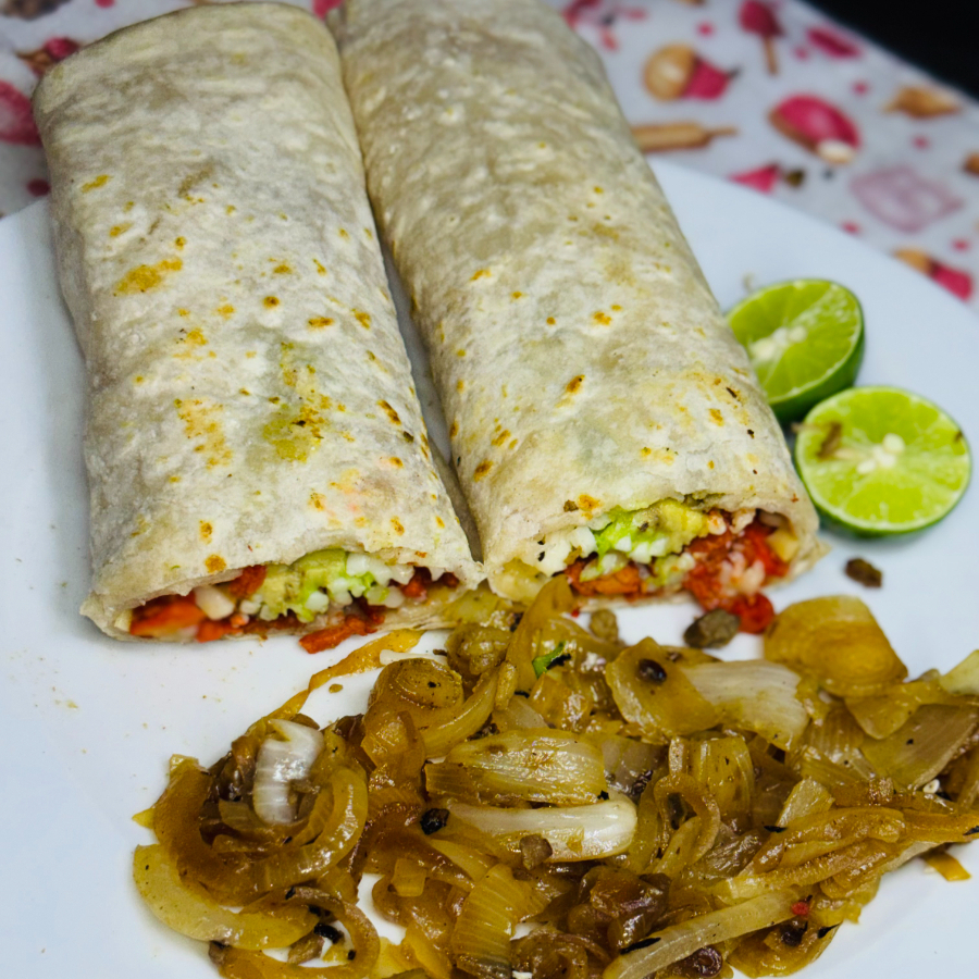 TORTILLA DE HARINA JUMBO INCLUYE QUESO CHIHUAHUA AGUACATE CEBOLLA ASADA LIMON Y SALSAS VERDE Y ROJA