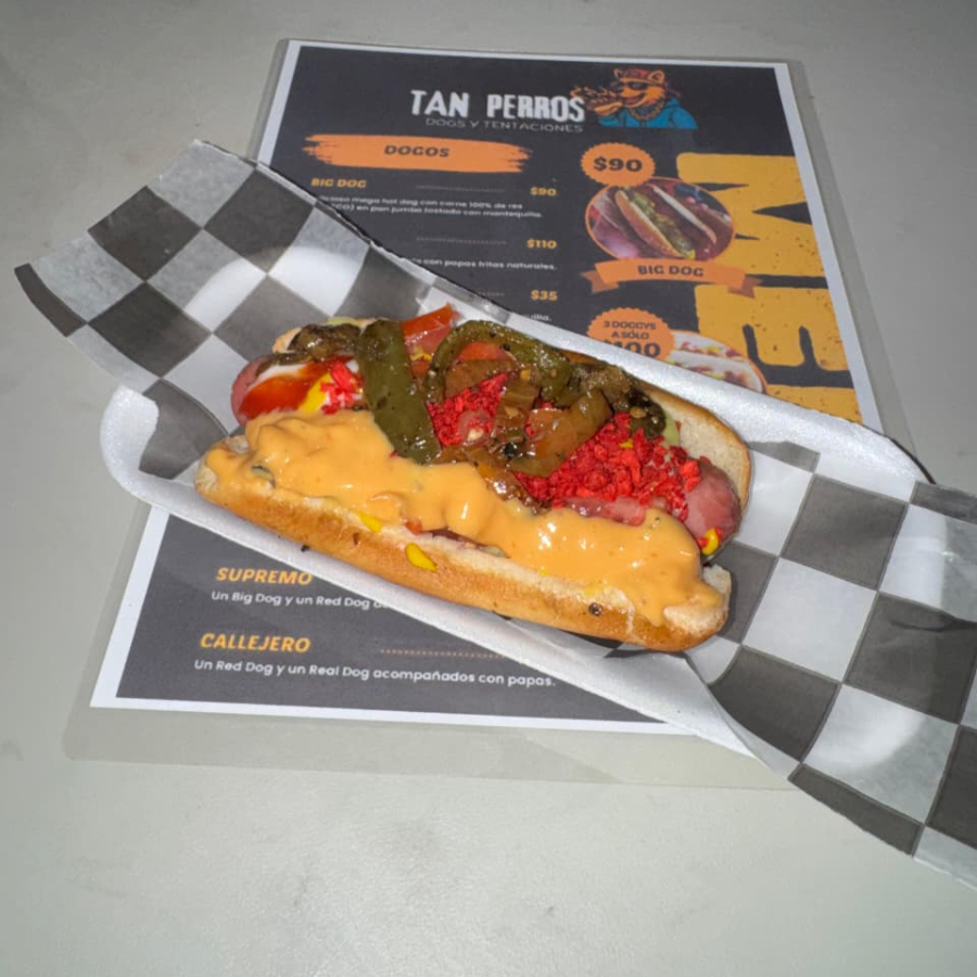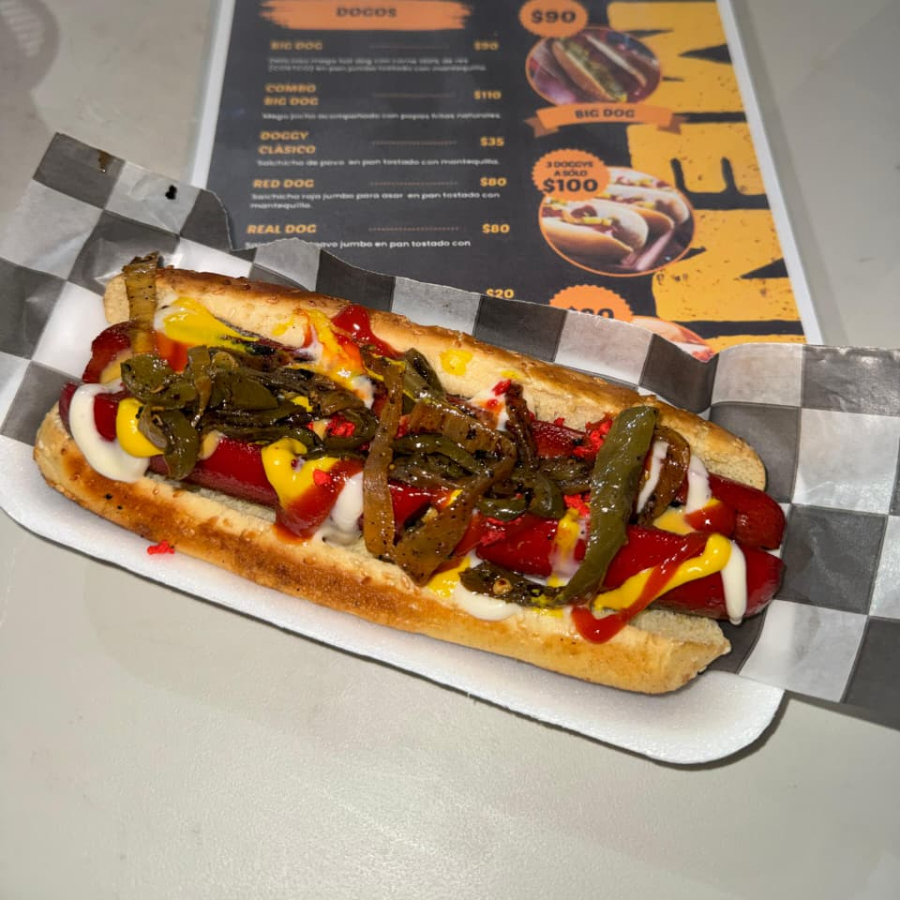 Big dog y Real dog o Red dog acompañados con papas saladas fritas naturales; preparado con los aderezos y toppings de tu preferencia.