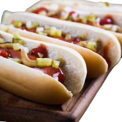 Salchicha de pavo clásica en pan regular preparado con los aderezos y toppings de tu preferencia.