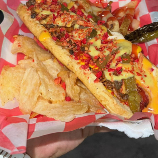 Real dog y Red dog acompañados con papas saladas fritas naturales; preparado con los aderezos y toppings de tu preferencia.