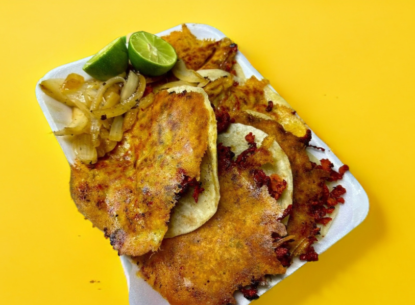Orden de 4 pzas, tortilla frita. queso gratinado, carne al pastor, acompañados de cebollita cocida.