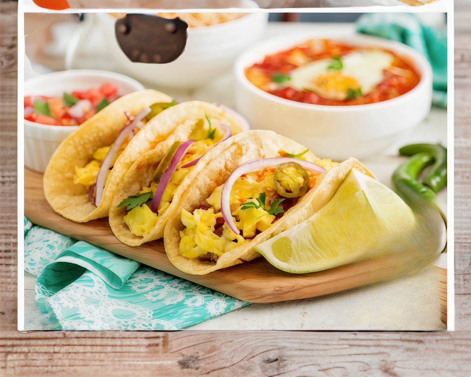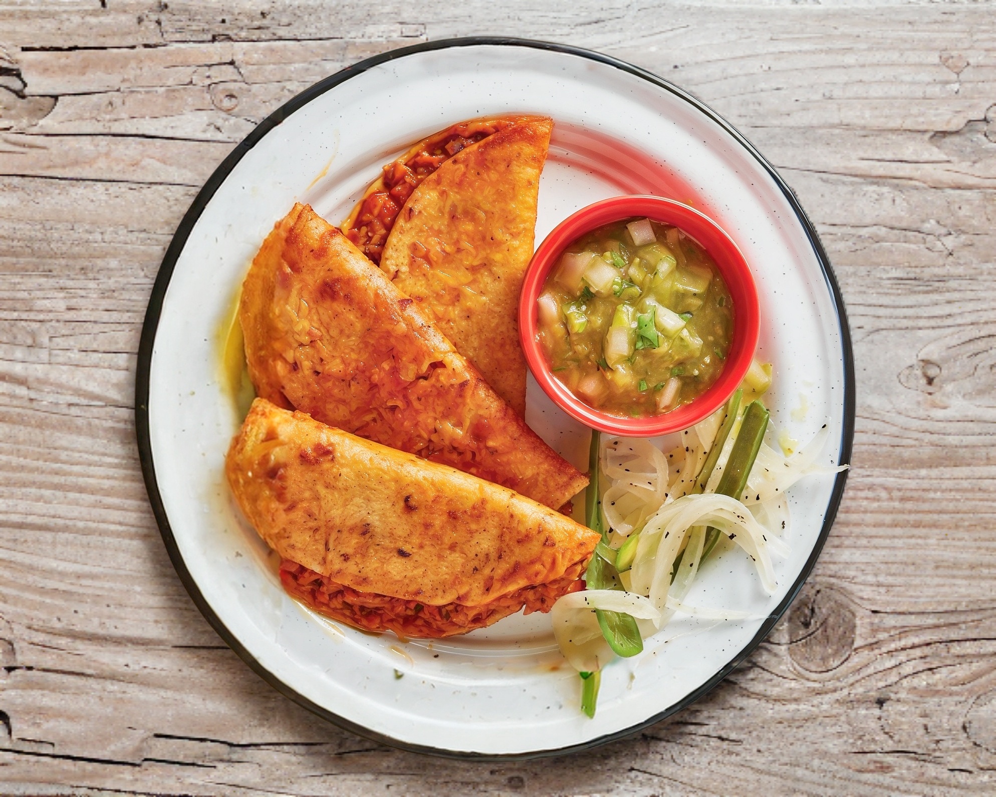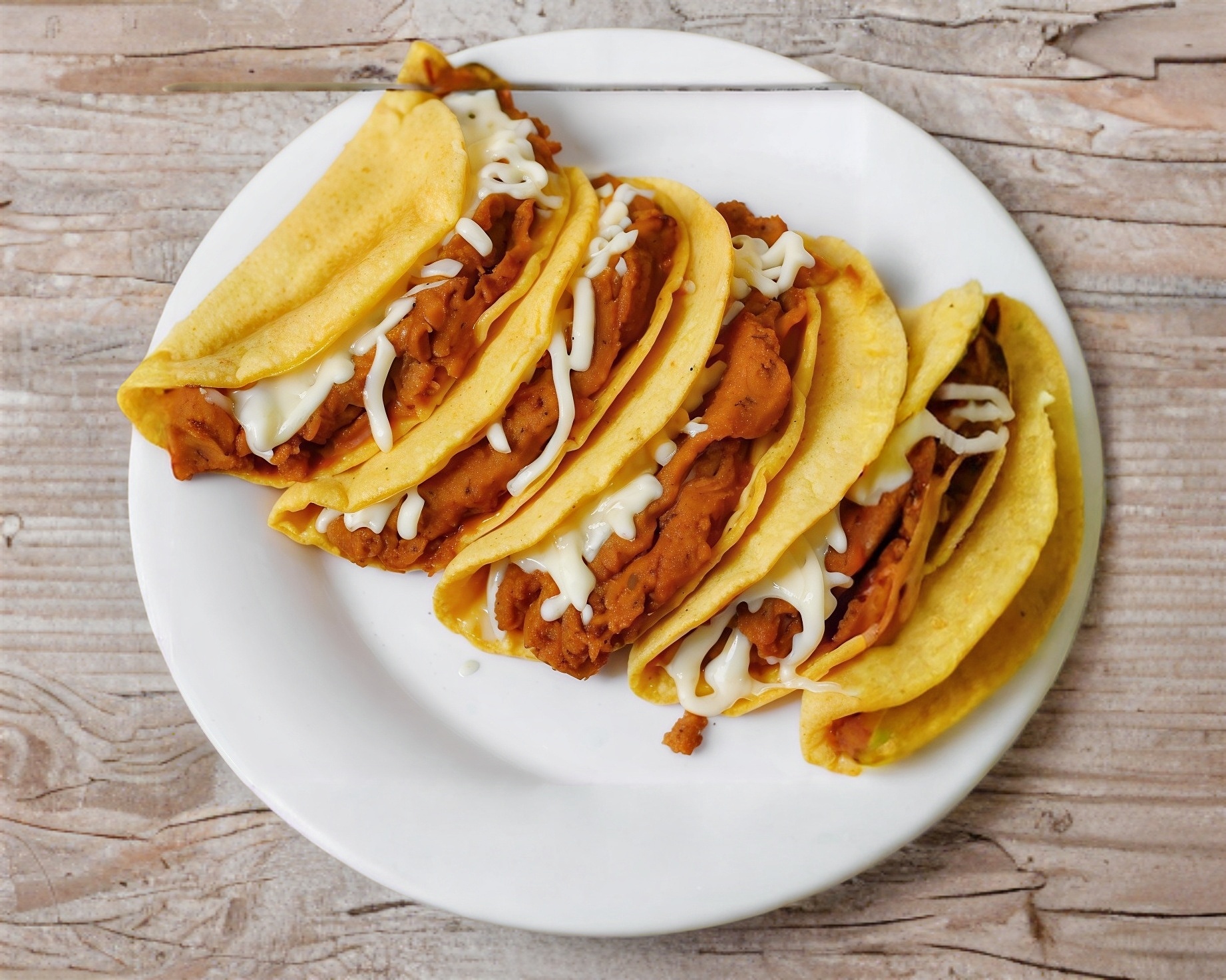 Orden de 5 tacos de los más pedidos; 2 de ramos en salsa verde, 2 de huevo con salsa y 1 queso con frijoles