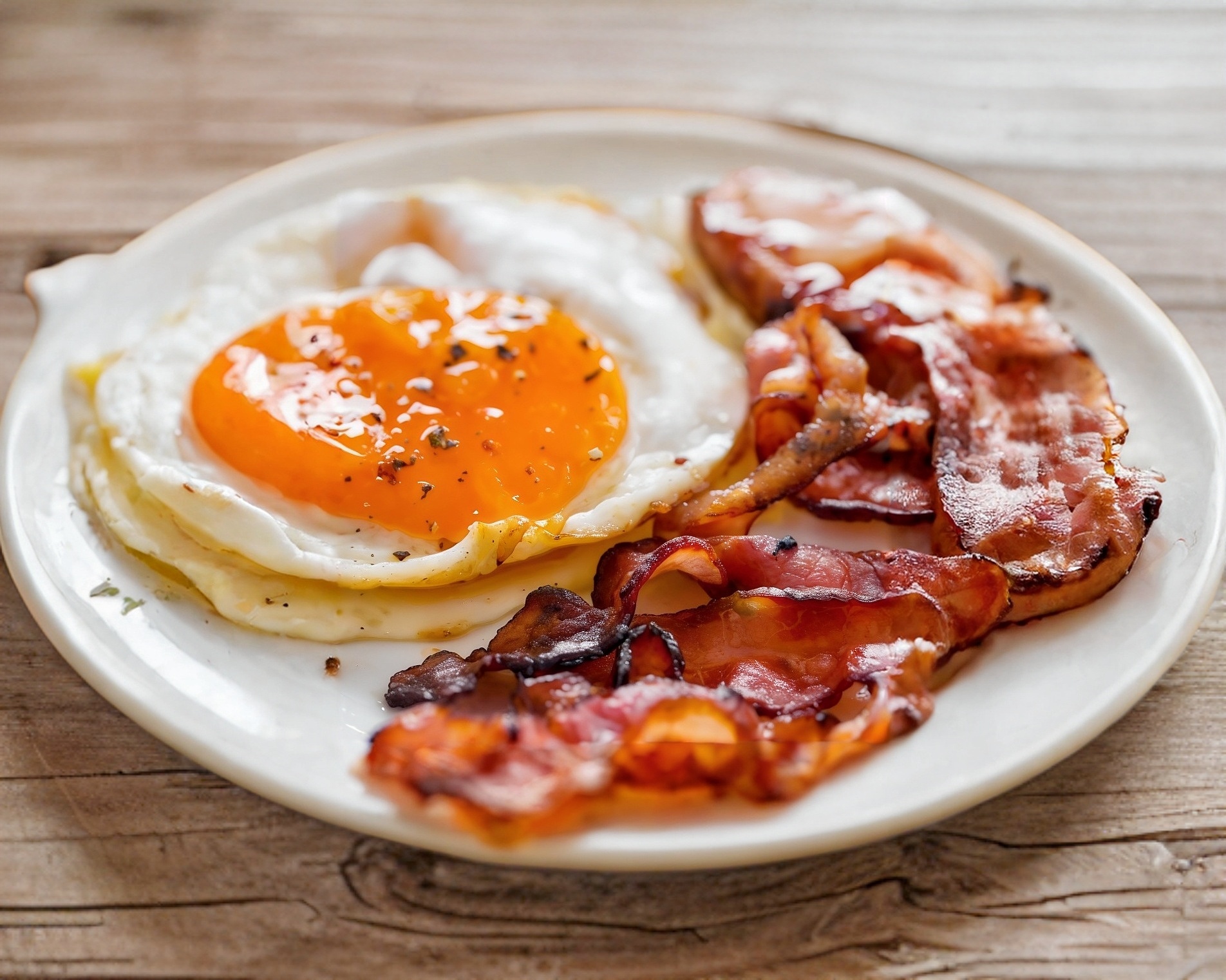 Huevos estrellados con tortilla dorada. Y se acompaña de tocino y frijoles