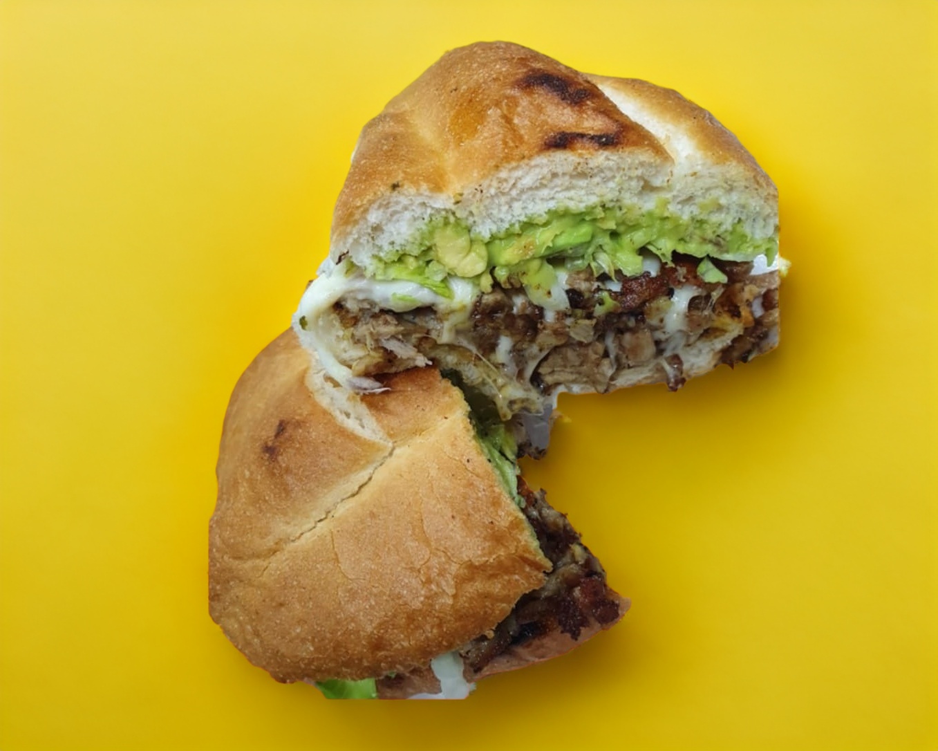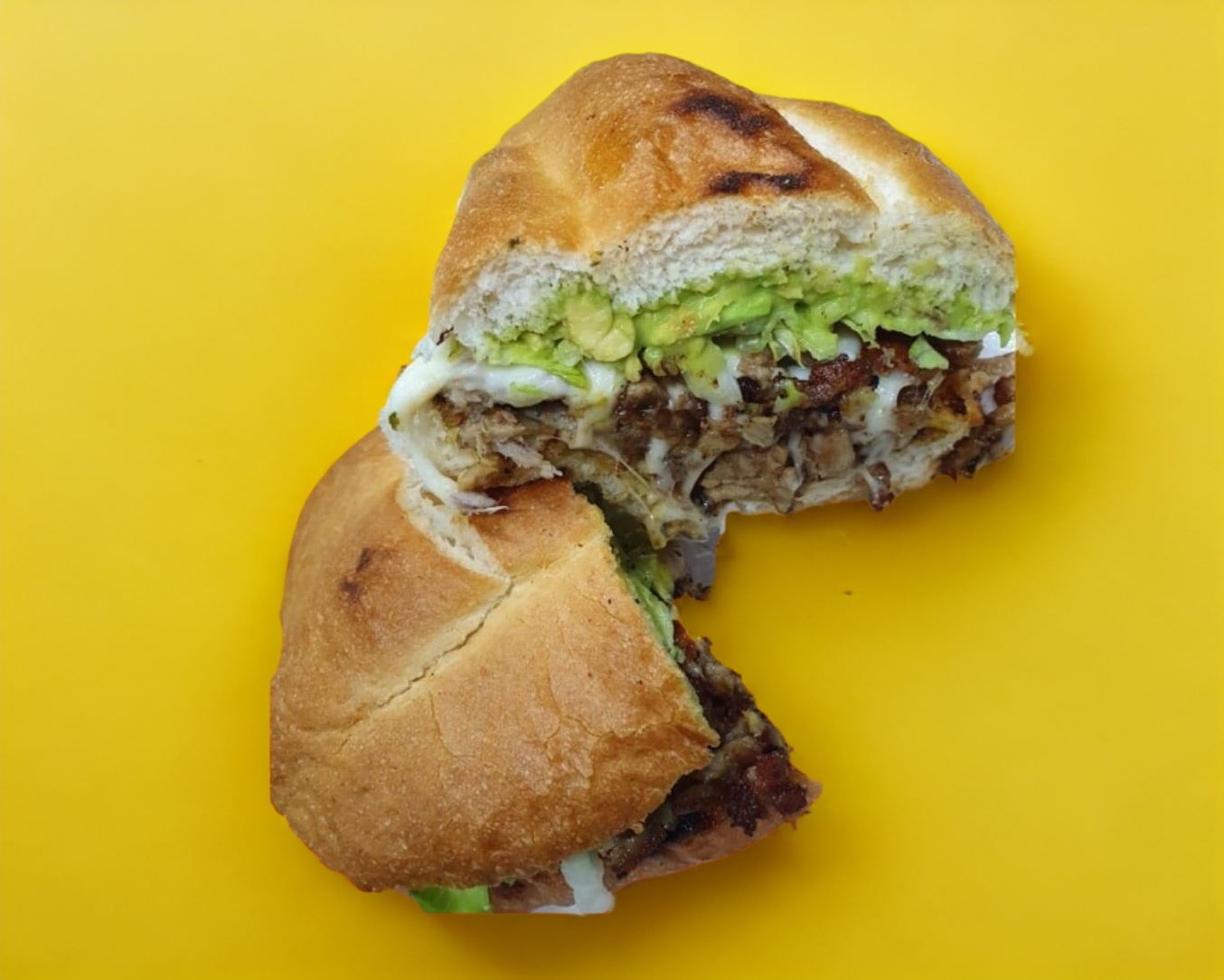 2 Tortas carne a elegir, incluye aguacate, lechuga…