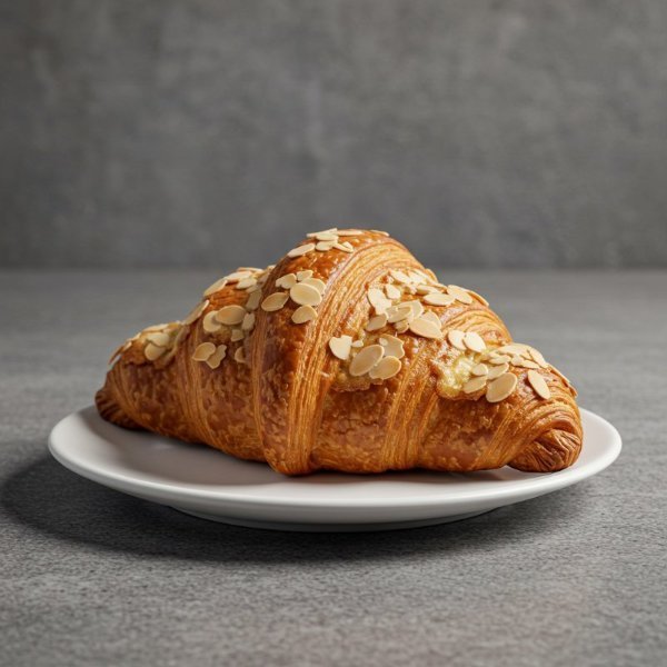 Delicioso croissant de mantequilla cubierto con crema de almendras y un toque de azúcar glas.