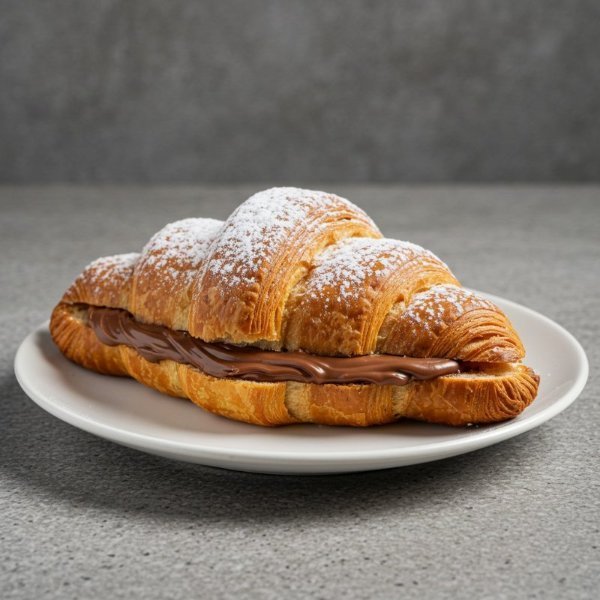 Delicioso croissant de mantequilla relleno de nutella y cubierto con un toque de azúcar glas.