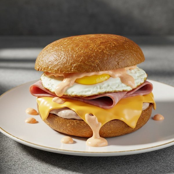 English muffin con huevo estrellado jamón de cerdo queso cheddar derretido y un toque de salsa holandesa. Un clásico lleno de sabor.