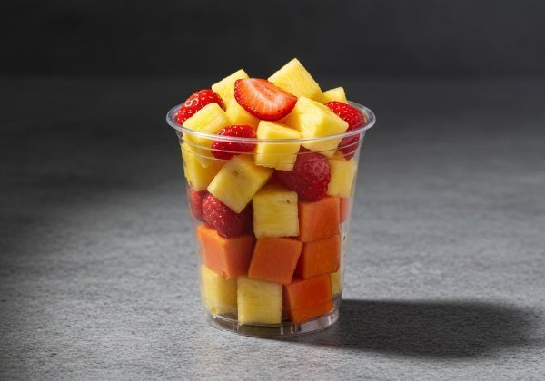Porción de fresa papaya y piña fresca una combinación tropical y deliciosa para empezar tu día. (177 gr).