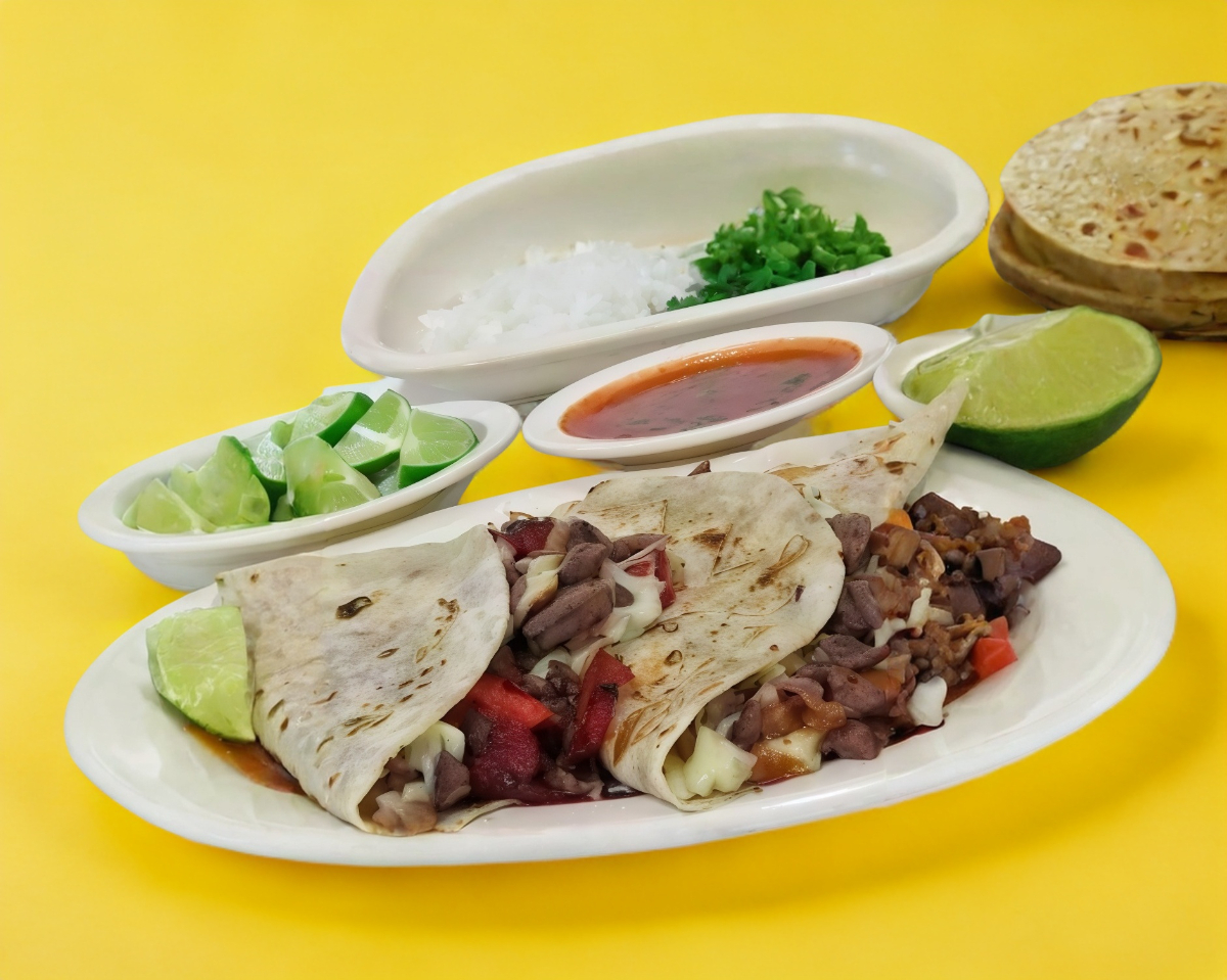 1 Taco grande con carne de bisteck y pastor en harina con queso