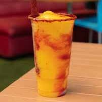 16 oz de un refrescante coctel preparado con con mango, chamoy, tajín, y tequila