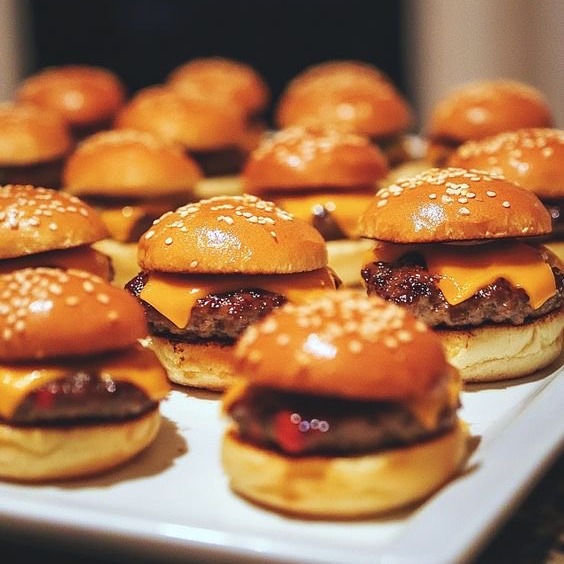 Seis mini hamburguesas alineadas como bolas en formación perfecta. Pan suave, carne jugosa acompañadas de queso cheedar. Estilo clásico: una jugada en equipo que nunca falla