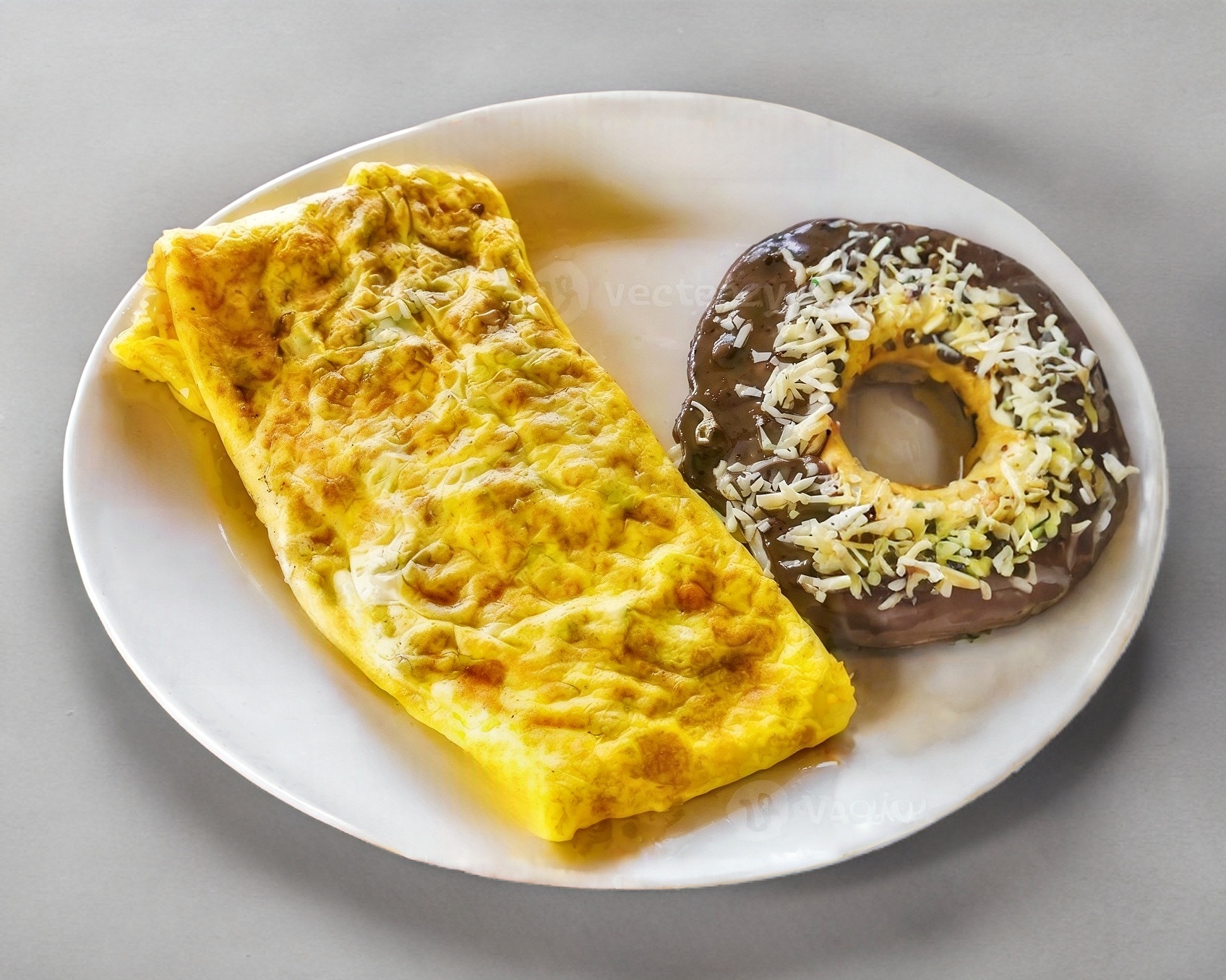 2 Huevos batidos hechos tortilla, relleno de queso asadero y jamon, acompañado de frijoles refritos y tortillas