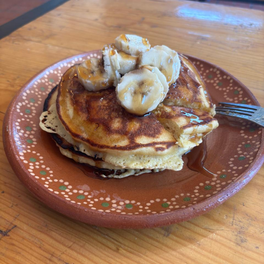 2 HOT CAKES, ACOMPAÑADO DE FRUTA DE TEMPORADA Y MIEL MAPLE