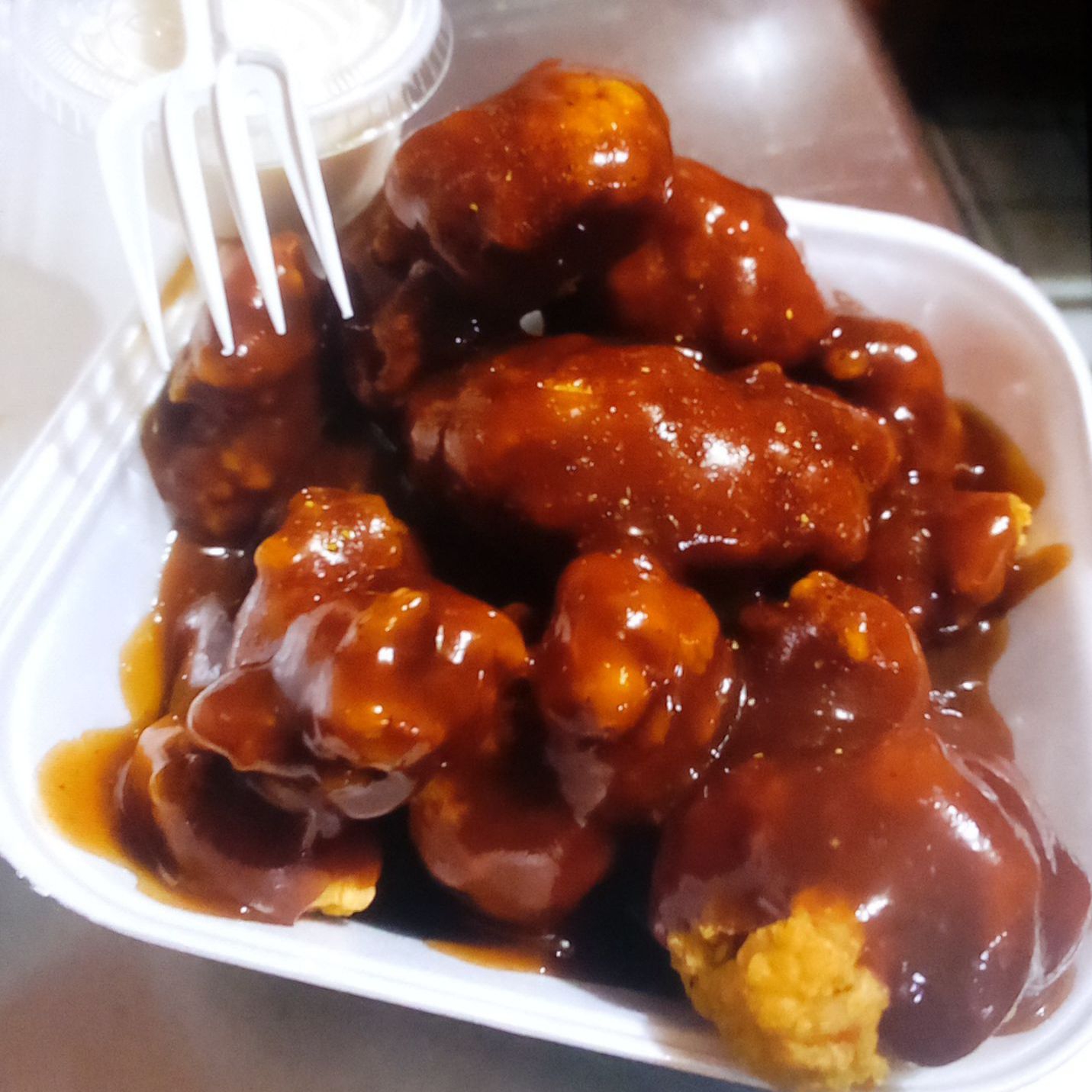 Orden con 10 piezas en salsa buffalo, bbq o mango habanero con aderezo ranch