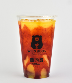 Frappé de mango natural con chamoy, base de agua, incluye una porción de perlas explosivas.