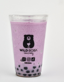 Frappé sabor taro, base de leche deslactosada, incluye una porción de tapioca.