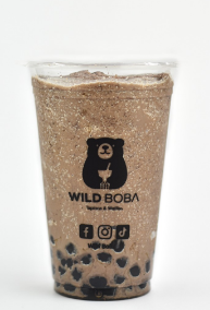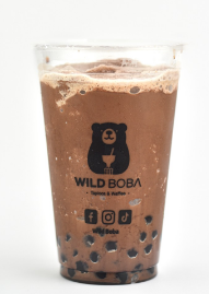 Frappé de café y chocolate, base de leche deslactosada, incluye una porción de tapioca.