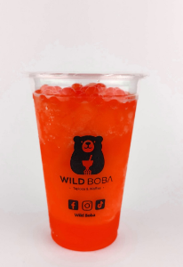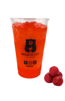 Frappé de fresa natural, base de agua, incluye una porción de perlas explosivas.