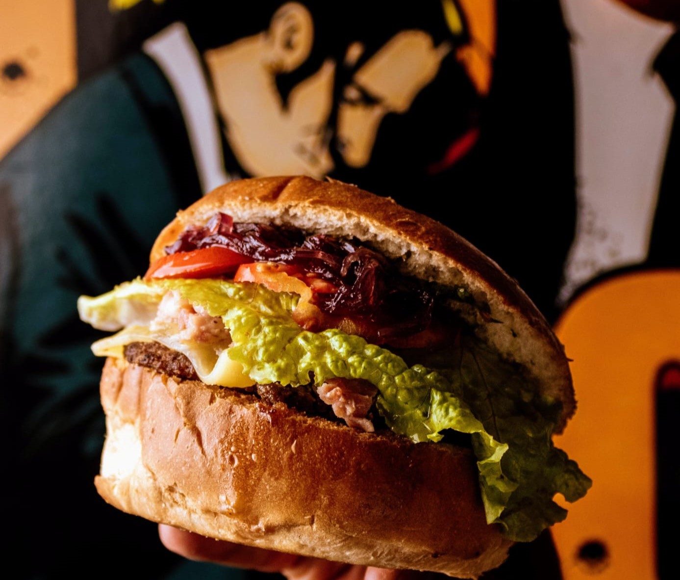 120GRAMOS DE DELICIOSA CARNE DE RES PREMIUM ELABORADA ARTESANALMENTE Y ASADA AL CARBON QUESO GOUDA, JITOMATE LECHUGA ROMANA Y CEBOLLA