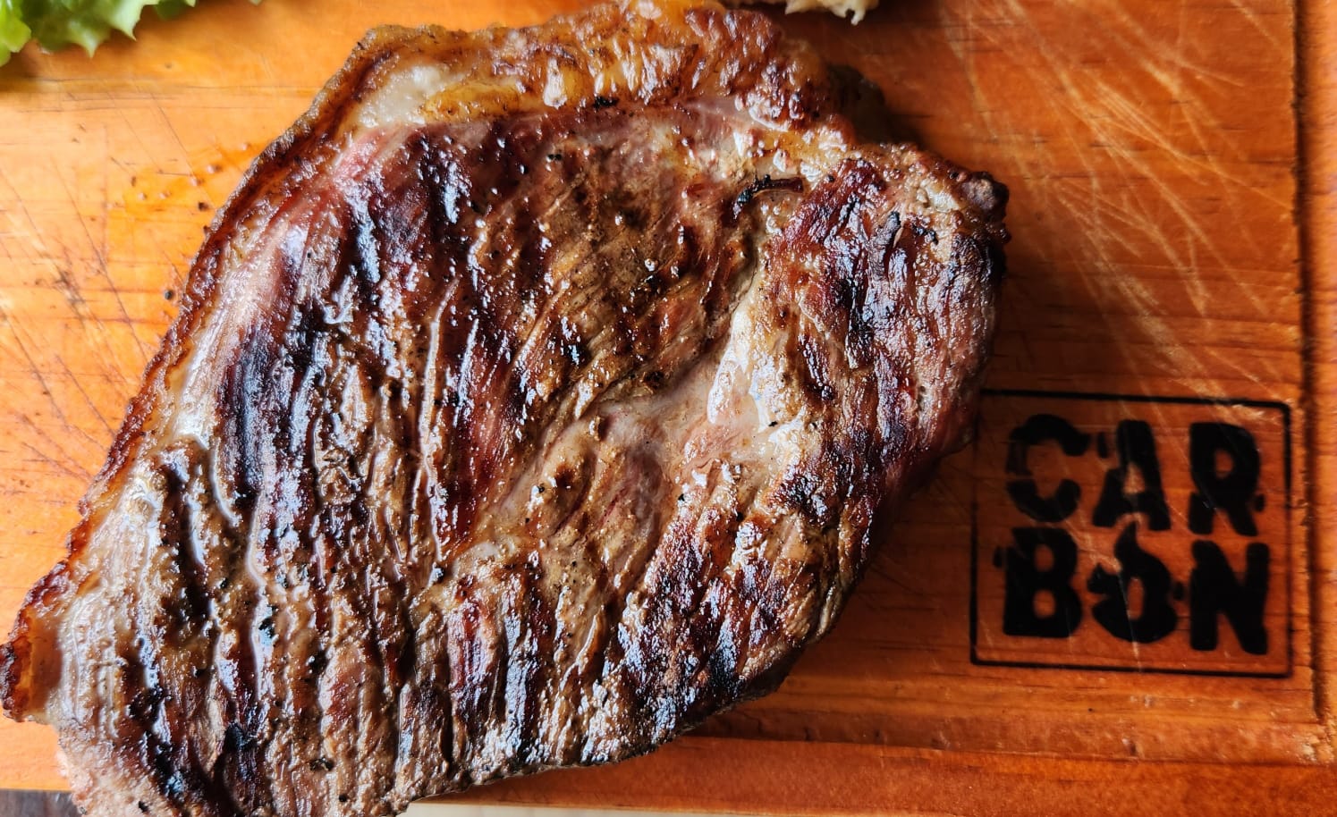 Corte de picaña de 300gr sazonado y asado al carbón, acompañado de pure de papa casero, ensalada fresca y chimichurri de la casa