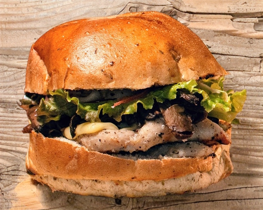 Deliciosa pechuga de pollo sazonada y asada al carbón, mayonesa, honey mustard, queso gouda, champiñones, jitomate, lechuga y cebolla