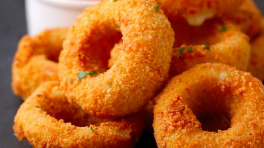 6 piezas de aros de cebolla crocantes, acompañados de aderezo de chipotle