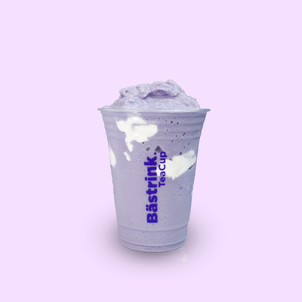 Dulce y cremoso Blend a base de leche y taro. Decorado con nubes de crema batida.