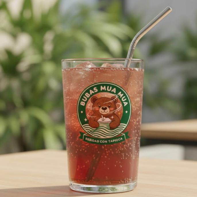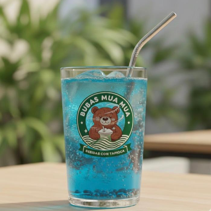 BEBIDA A BASE DE JARABE DE MORA AZUL, AGUA MINERAL, SODA Y PERLAS DE TAPIOCA
