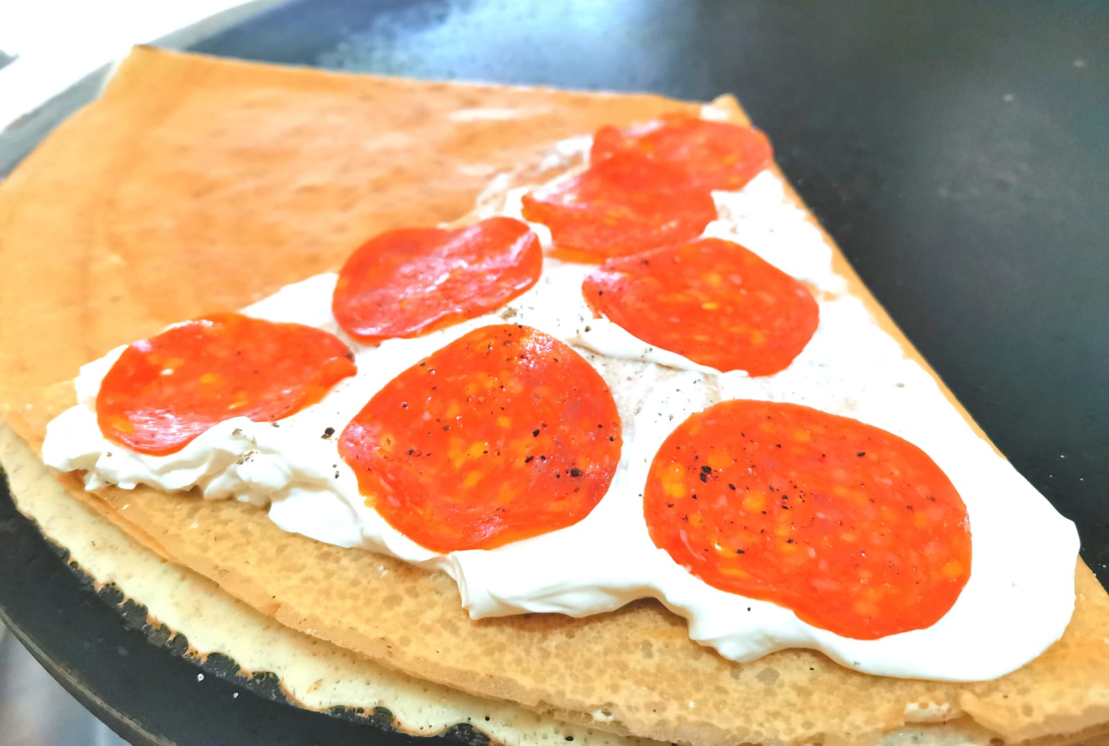 Crepa salada de 2 ingrediente a elegir de las opciones: Manchego con Philadelphia, Manchego con Jamón, Philadelphia con Jamón, Philadelphia con pepperoni, philadelphia con champiñones, manchego con champiñones