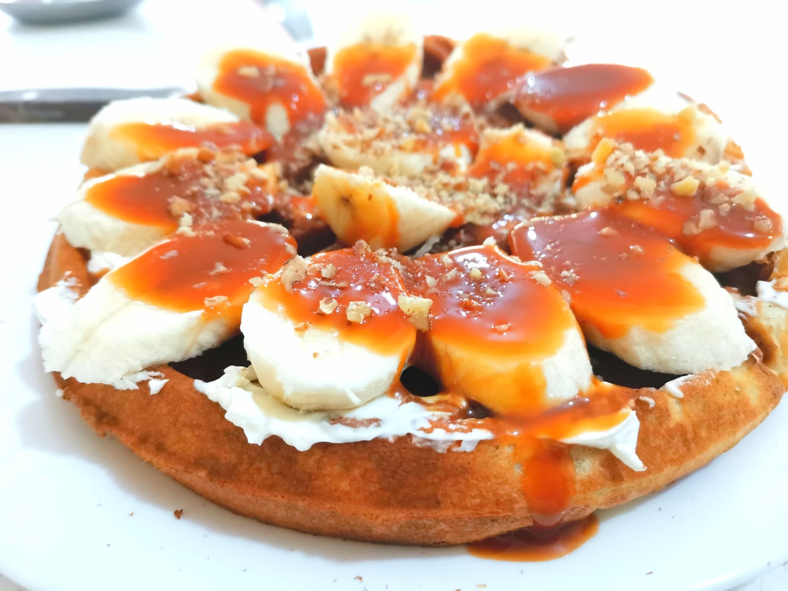 Waffle dulce elige de entre los siguientes ingredientes: Lechera, mermelada fresa, mermelada zarzamora, chabacano, crema de cacahuate, dulce de leche o mermelada de Piña, Nutella, Cajeta.