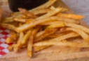 Pan rústico de la casa y papas a la francesa, carne de res, lechuga, tomate, cebolla, tocino, salsa de 3 quesos al perejil.