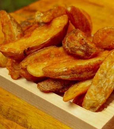 Con pan rústico de la casa y papas a la francesa, carne de res, lechuga, tomate, cebolla, tocino, salsa de piña y habanero.