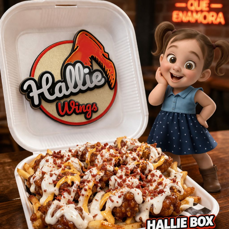 UNA ORDEN DE ALITAS, UNA ORDEN DE BONELLES , UNA ORDEN DE PAPAS GAJO ,UNA HAMBURGUESA, 2 DEDOS DE QUESO,AROS DE CEBOLLA , 3 TENDERS , 2 REFRESCO DE LATA DE 355 ML .