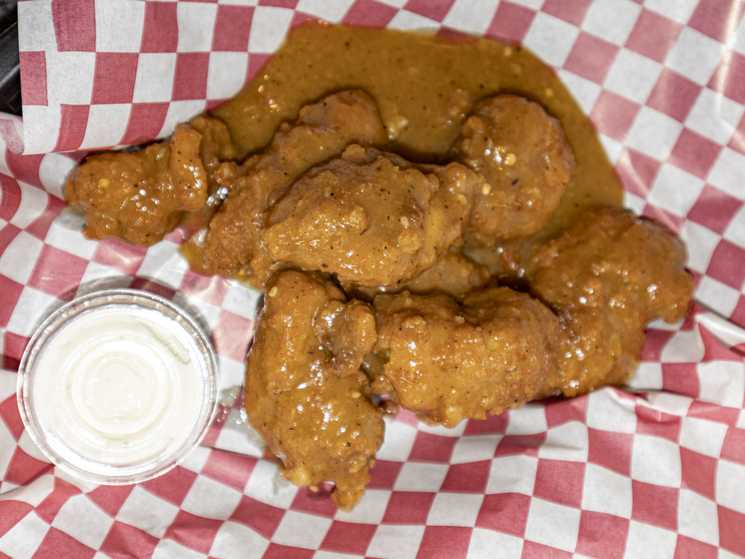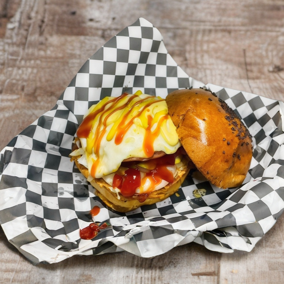 Aderezos, jamón, queso amarillo, tocino, lechuga, tomate, cebolla frita y deliciosa salsa BBQ.