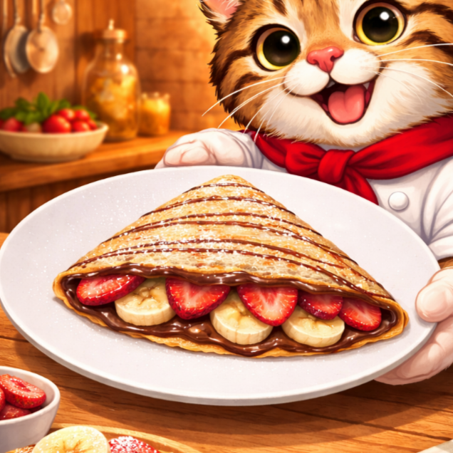 Crepa rellena de platano, fresa y nutella.