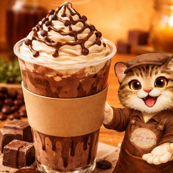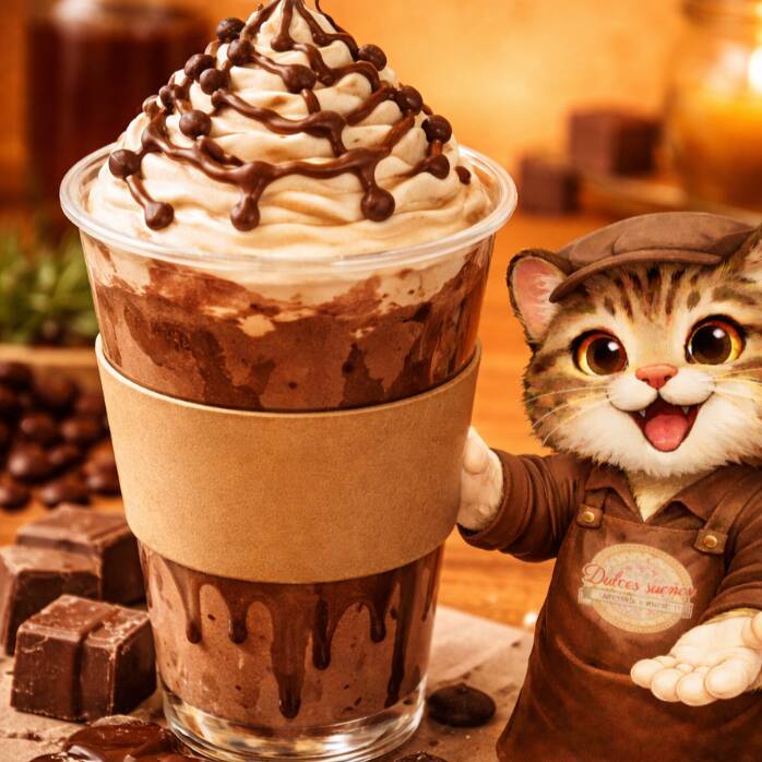 Nuestro chocolate de la casa artesanal en frappe.