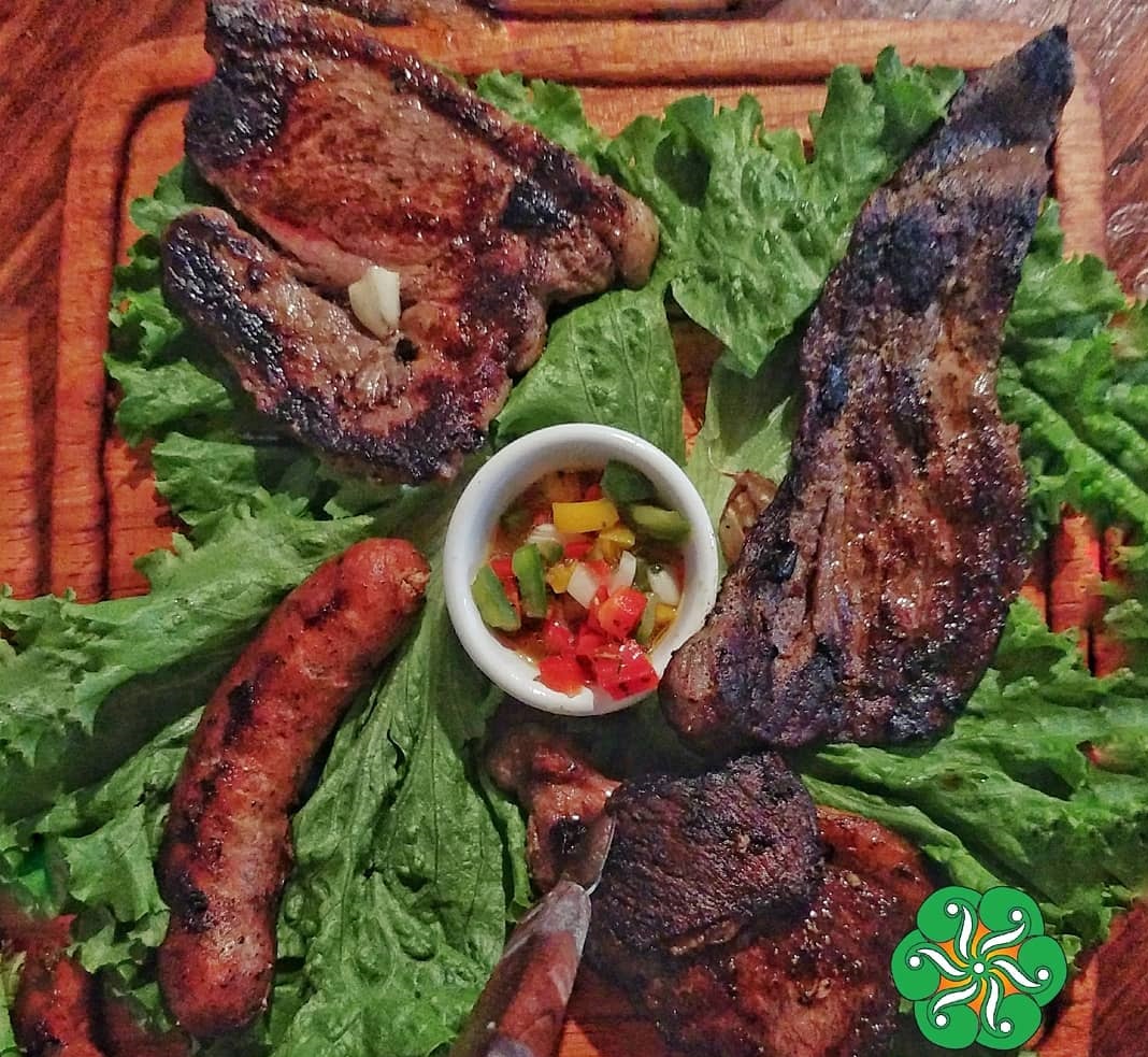 Arrachera, t-bone, mollejas, churrasco con papa provenzal, ensalada y chorizo.