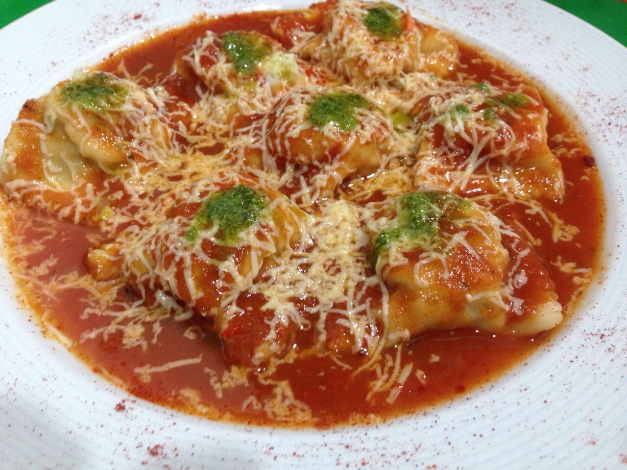 Ravioles de Espinacas Con Salsa de Tomate