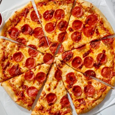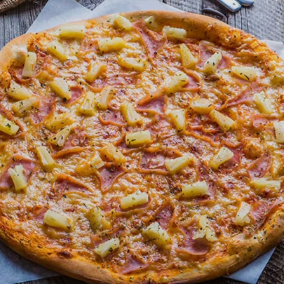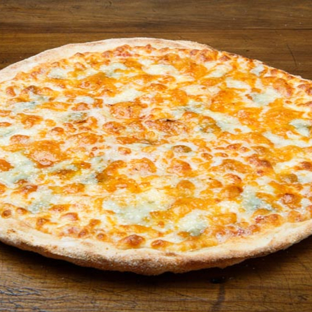 Salsa de jitomate, queso mozzarela, queso azul y parmesan