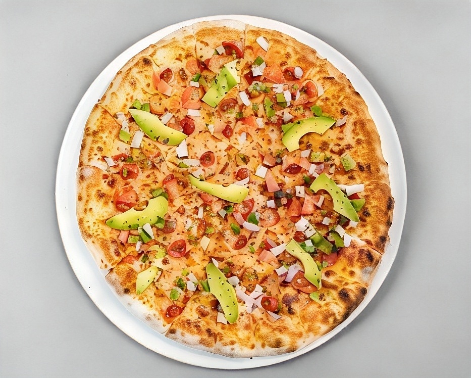 Tomate, mozzarella, chorizo jalapeños, aguacate y pico de gallo.