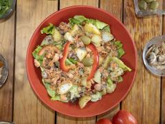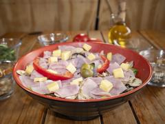 Pollo, nuez, queso gouda, manzana, aceitunas y queso de cabra.