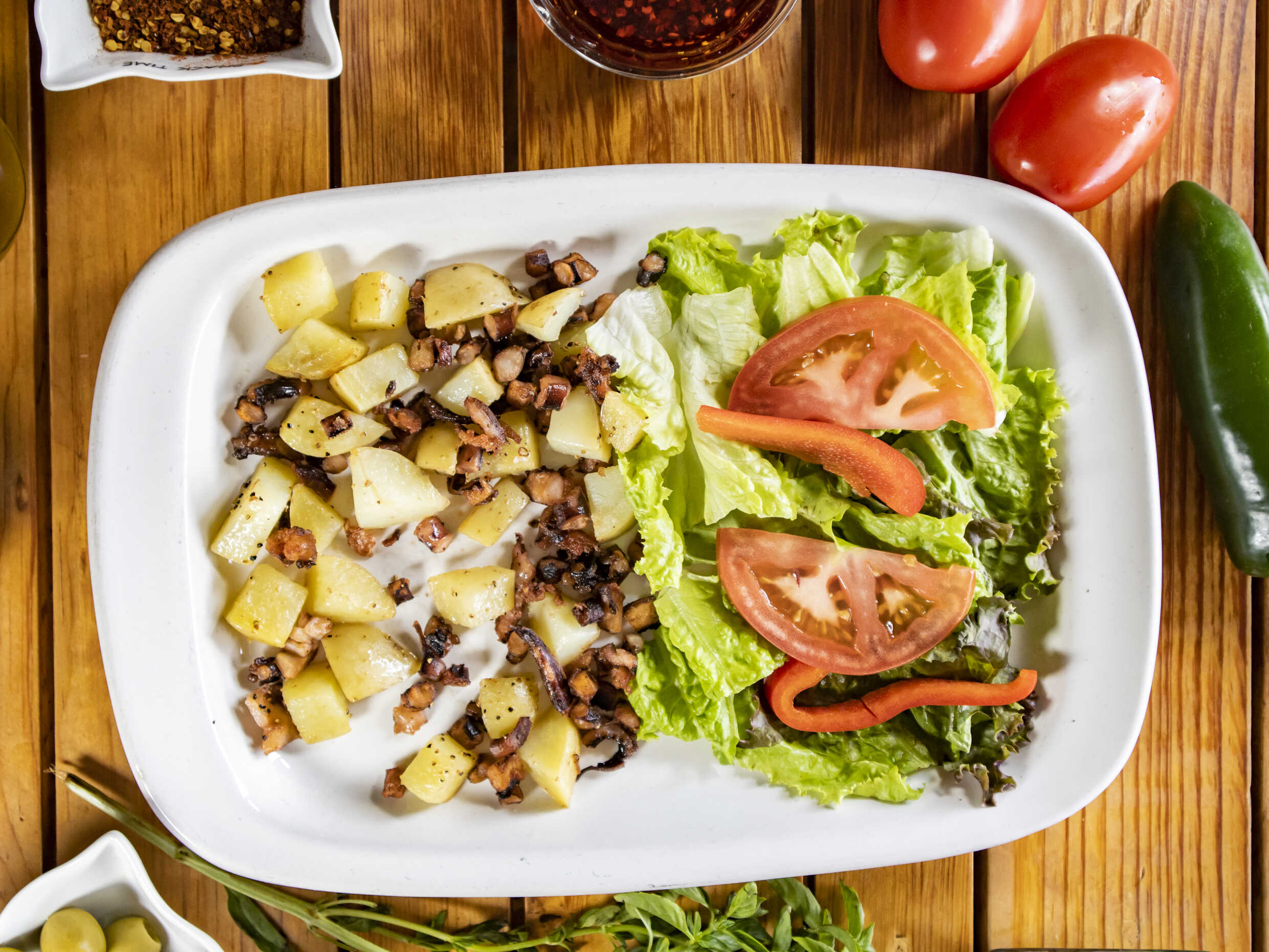 Jamón de pierna, salami, queso gouda, lechuga, tomate y aceitunas negras.