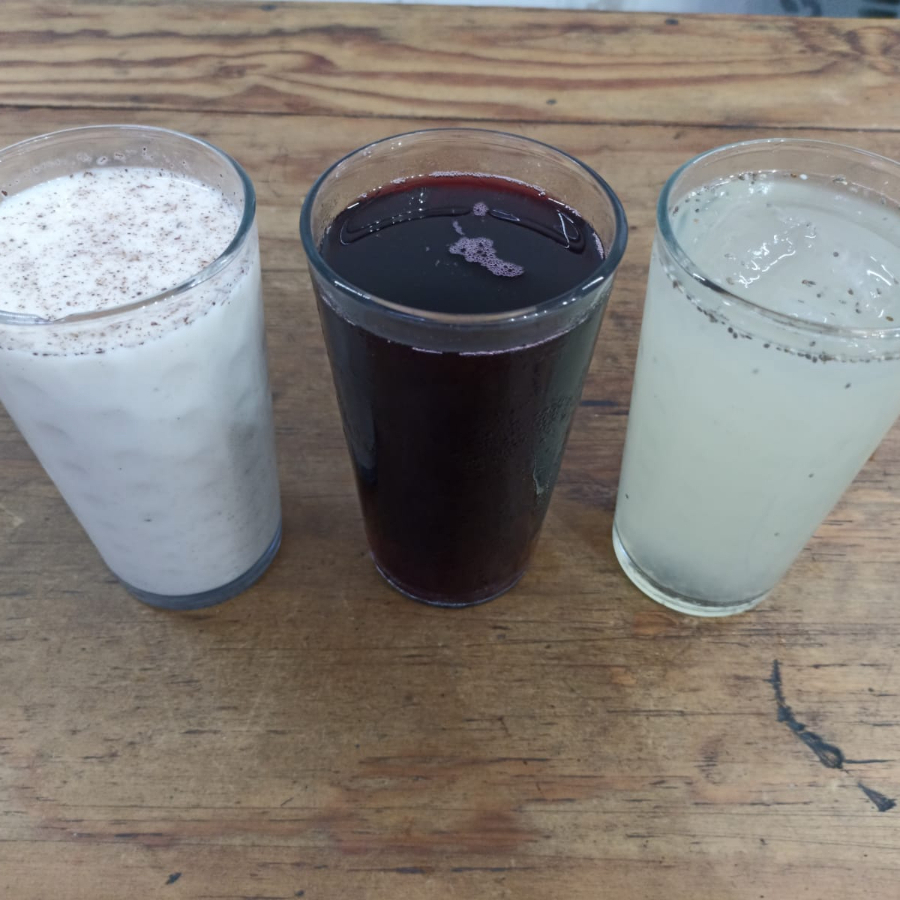 agua fresca de sabor Limón con chía, horchata y Jamaica