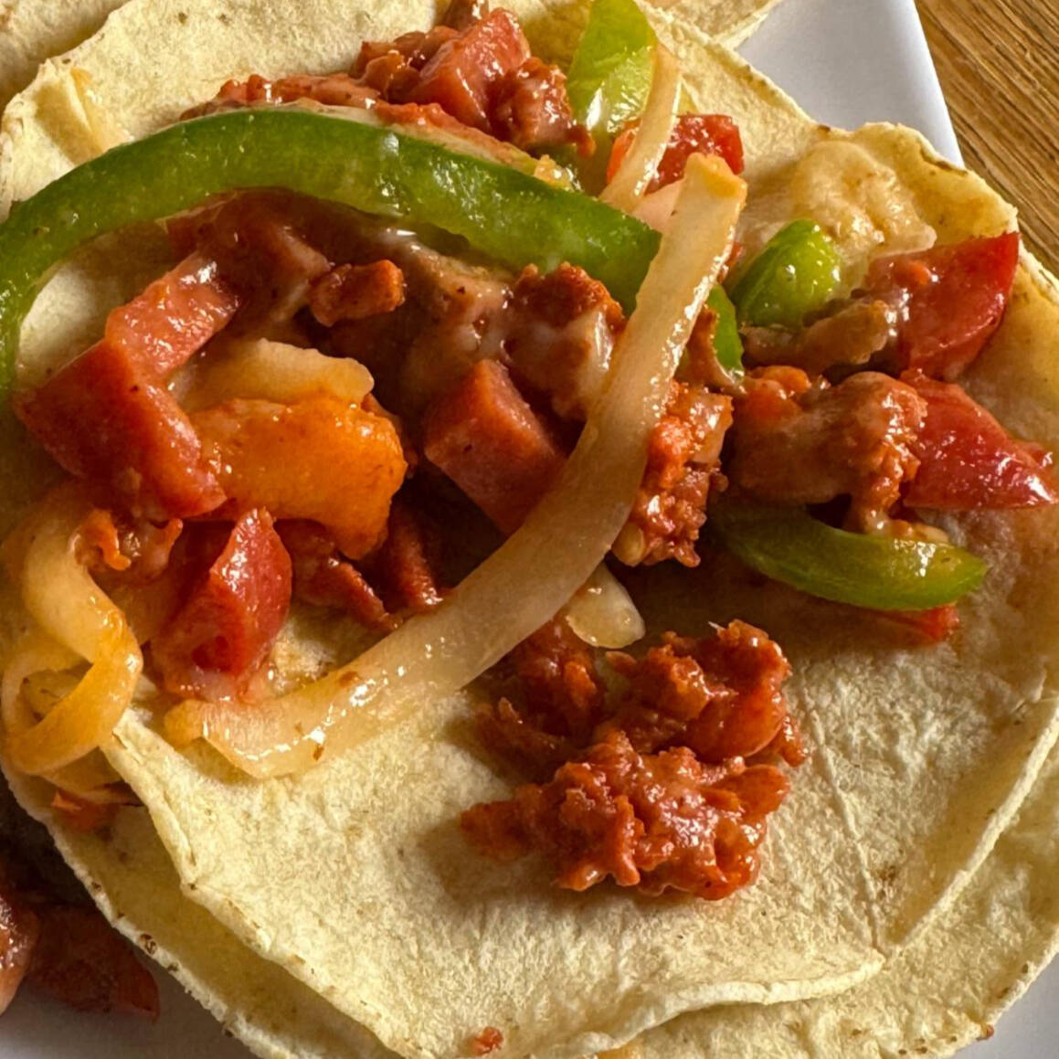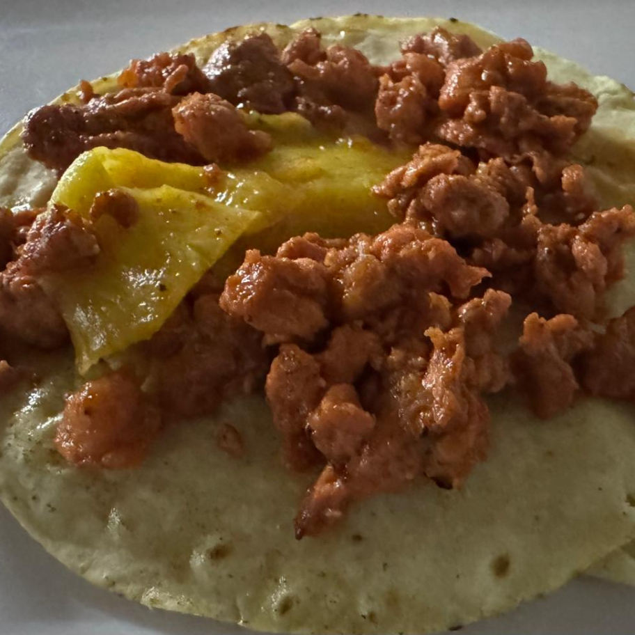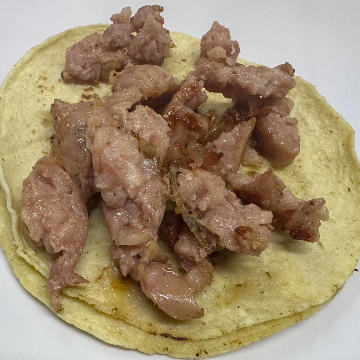 CARNE DE AL PASTOR, PIÑA, QUESO Y EN TORTILLAS DE HARINA.