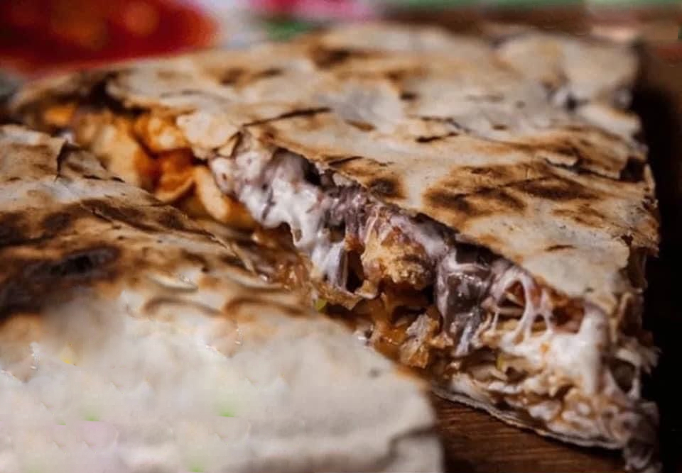 Tortilla de harina grande, quesillo, cebolla, cilantro y 1 carne a escoger.