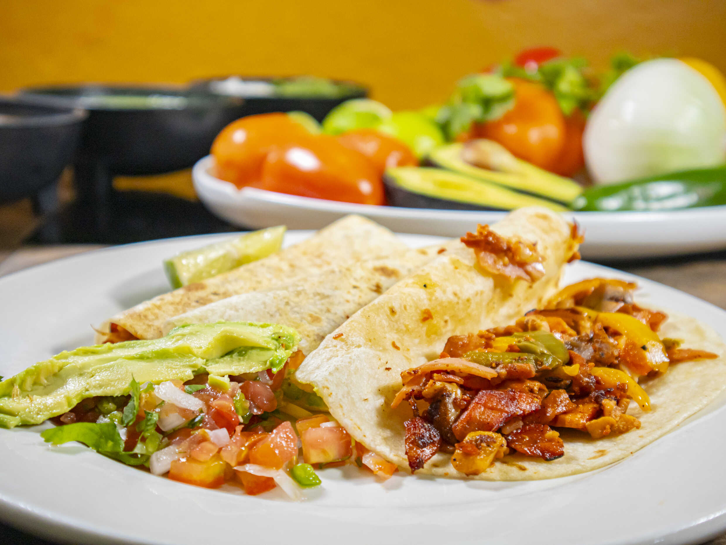 Taco con distintas carnes y vegetales