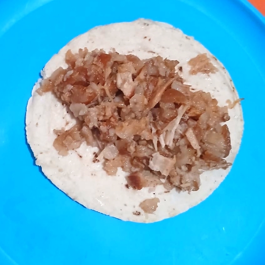 Taco de carnitas de puerco Masisa y cuerito